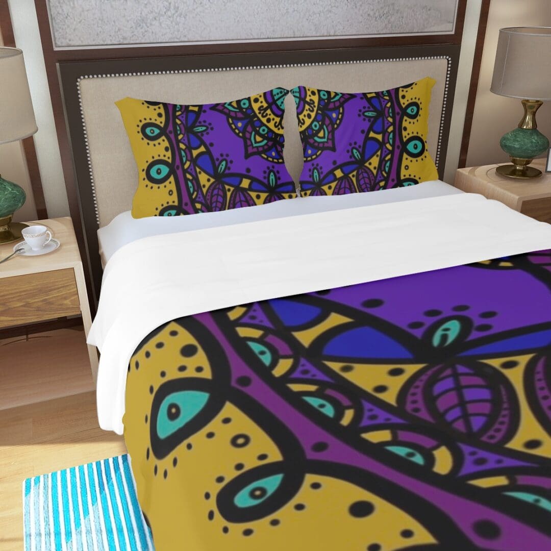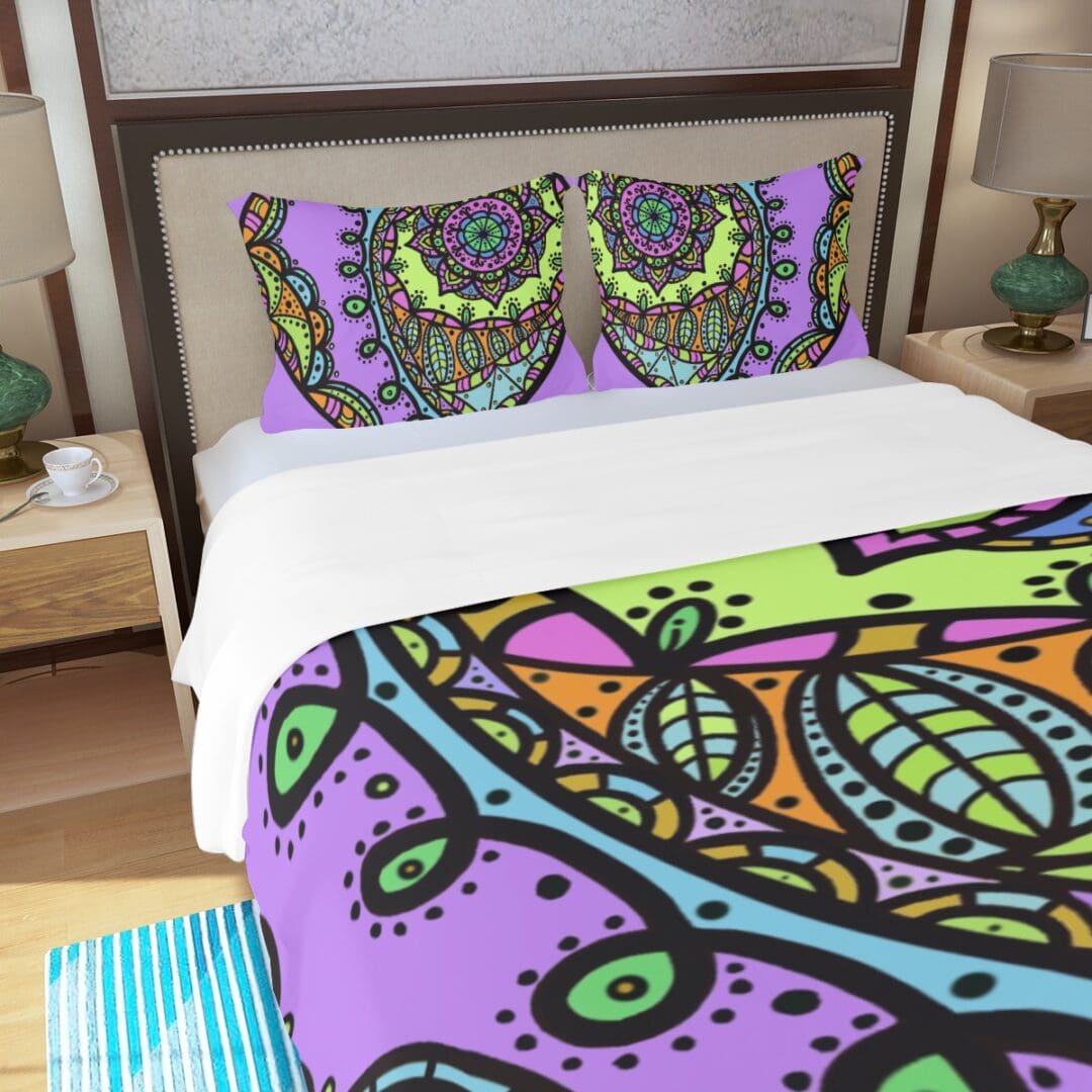 Three Piece Duvet Bedding Set in Majestic Heart Mandala