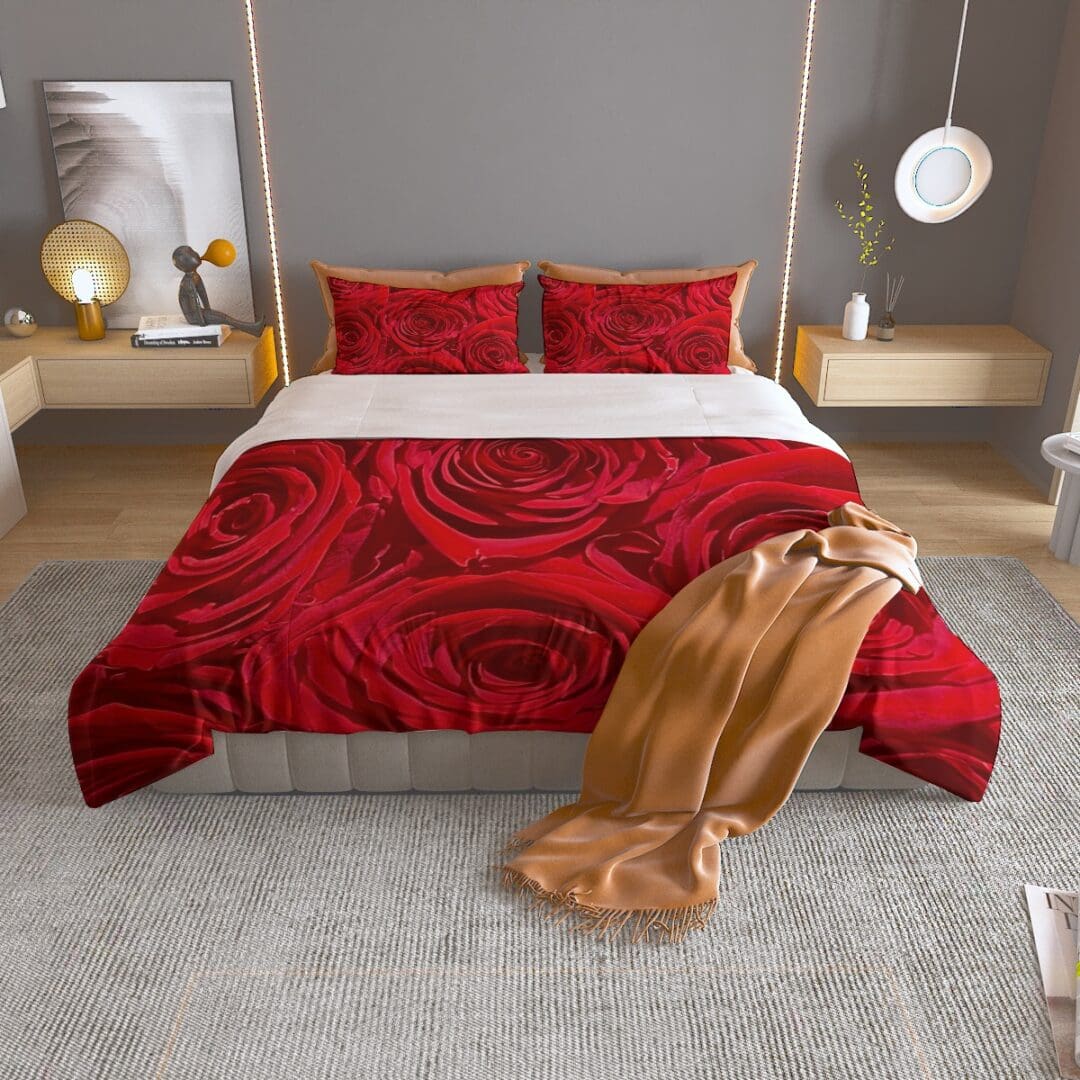 Bedding Set | 125(gsm)Sizes: Twin, Full, Queen, King in Roses Are Red