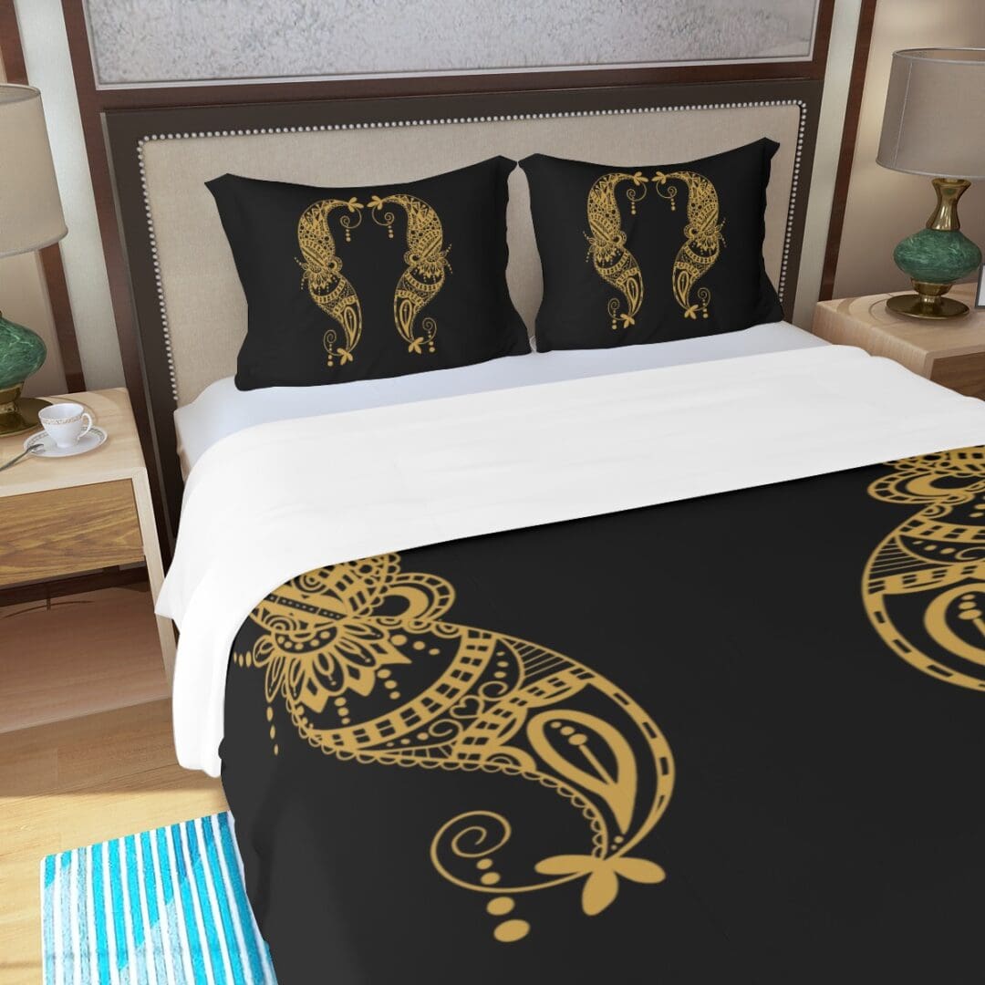 Three Piece Duvet Bedding Set in Golden Peace