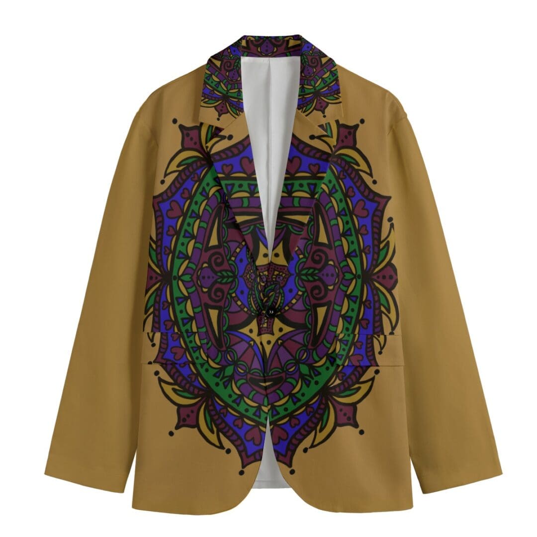 Men’s Casual Flat Lapel Collar Blazer | 245GSM Cotton Sizes XS-5XL Golden Power Mandala