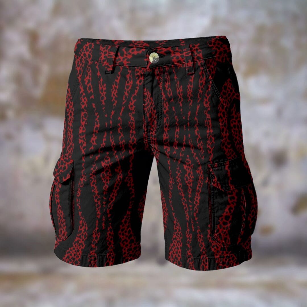 Men’s Cargo Shorts Sizes S-5XL in Red Tiger Power