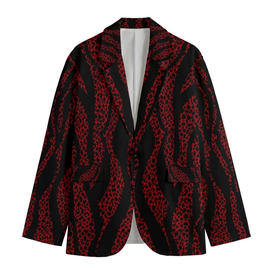 Men’s Casual Flat Lapel Collar Blazer Sizes XS-5XL in Red Tiger Power