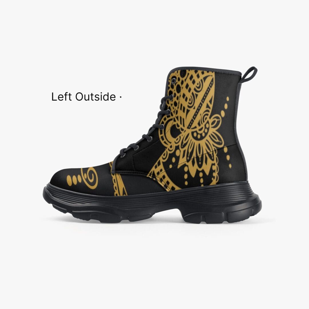 Unisex Waterproof Casual Leather Chunky Boots in Henna Tattoo Love