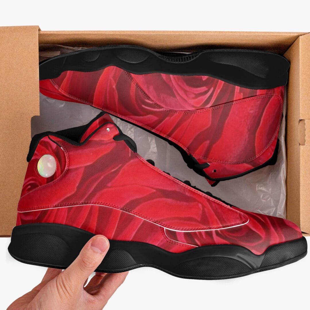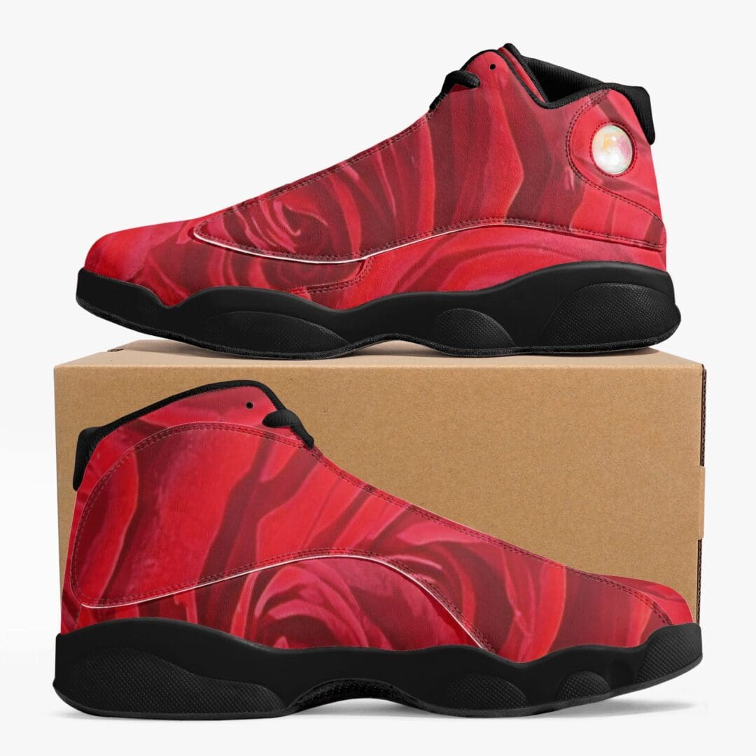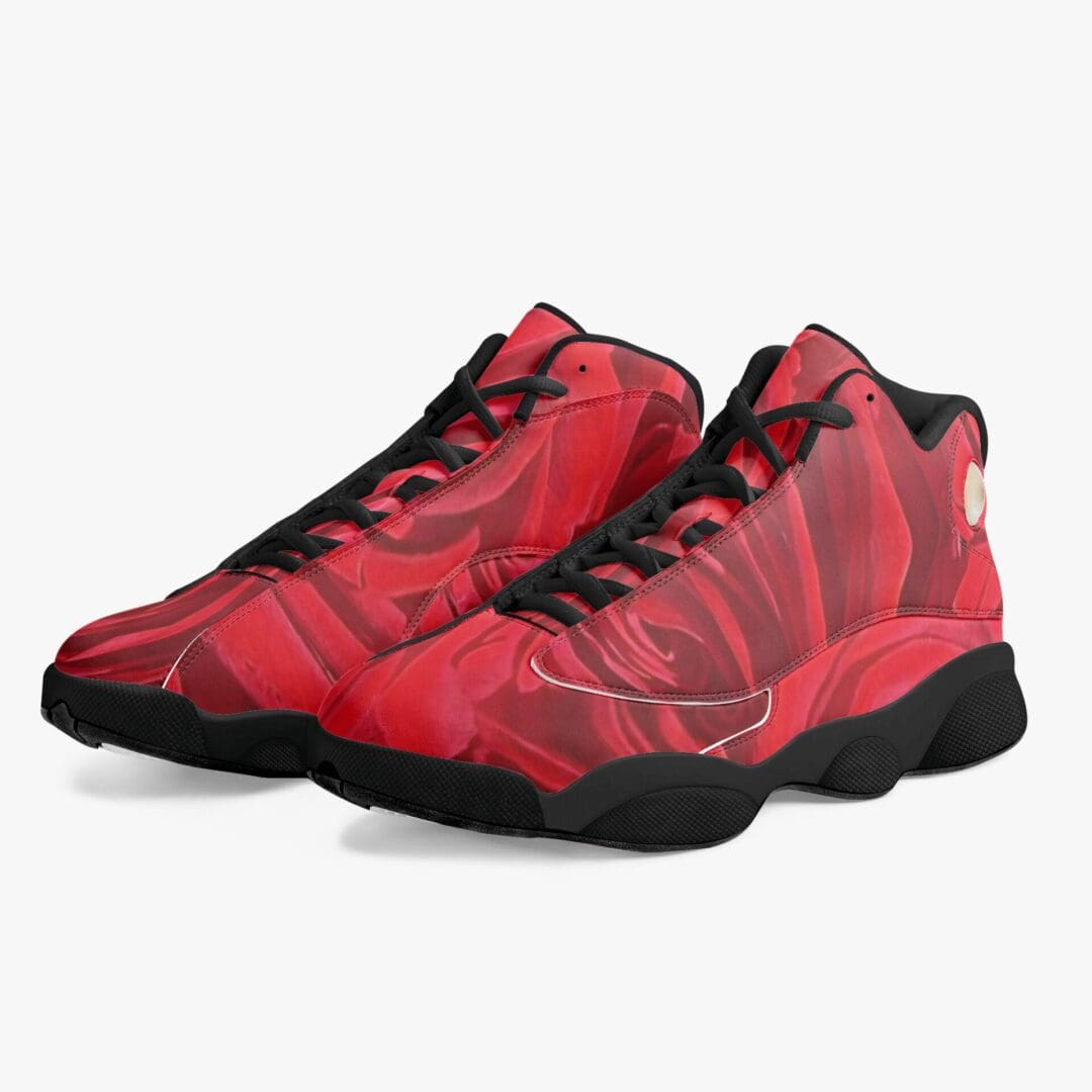 Black Sole High-Top Leather Basketball Sneakers in Roses Are Red