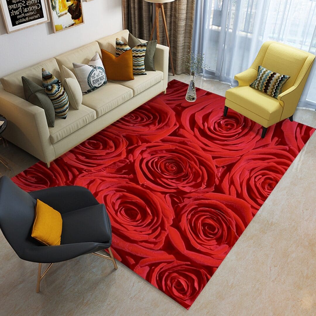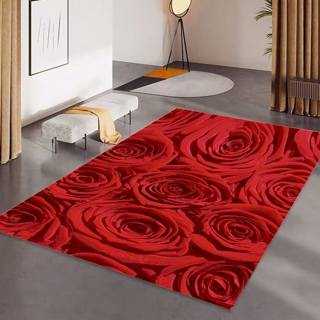 Foldable Rectangular Floor Mat Sizes S-XL in Roses Are Red