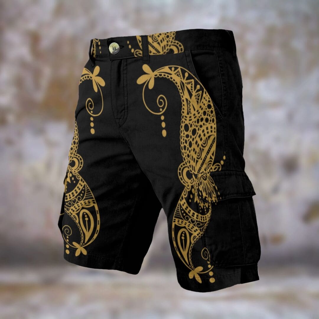 Men’s Cargo Shorts Sizes S-5XL in Henna Tattoo Love