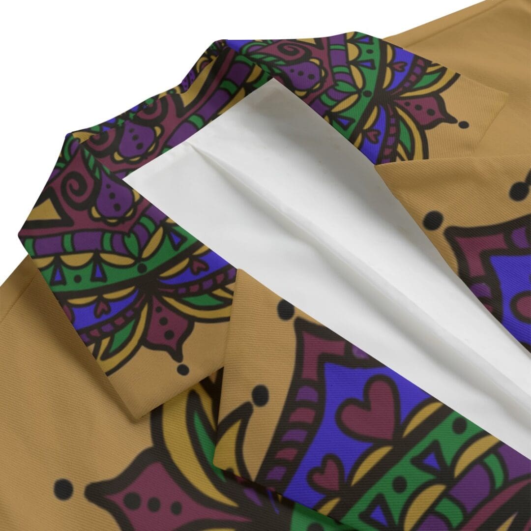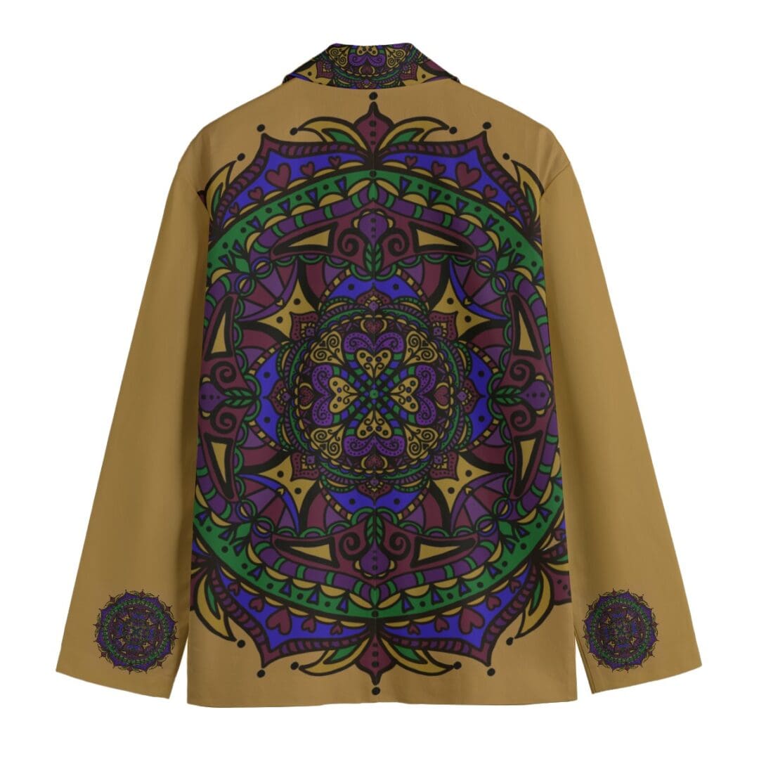 Men’s Casual Flat Lapel Collar Blazer | 245GSM Cotton Sizes XS-5XL Golden Power Mandala