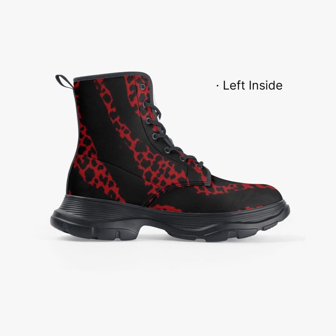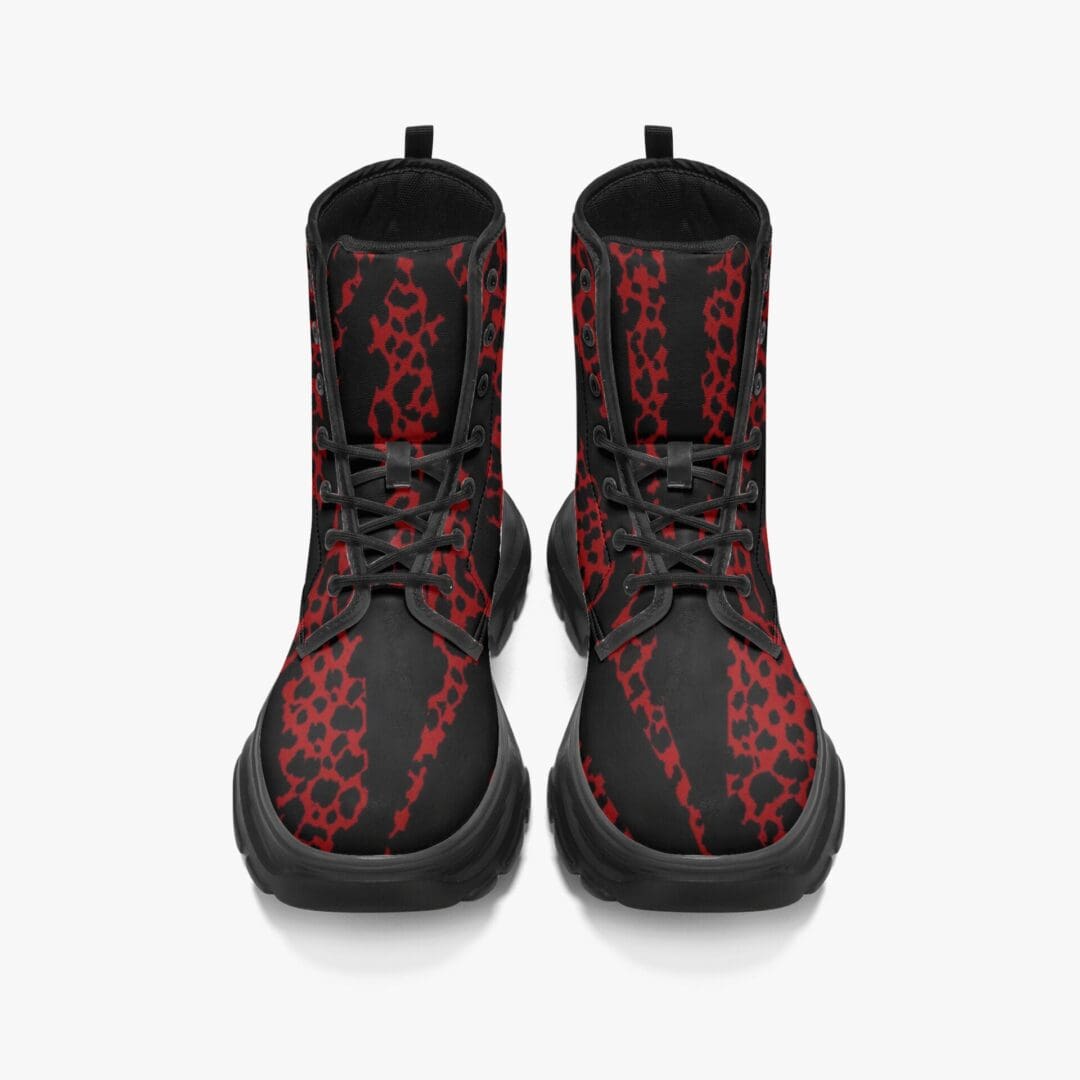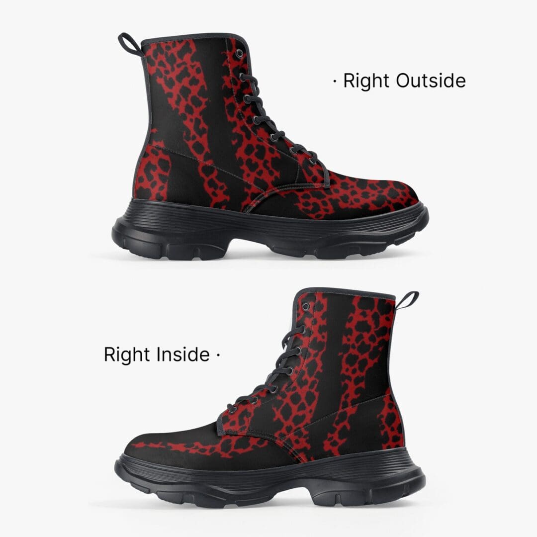 Unisex Casual Leather Chunky Boots in Red Tiger Power
