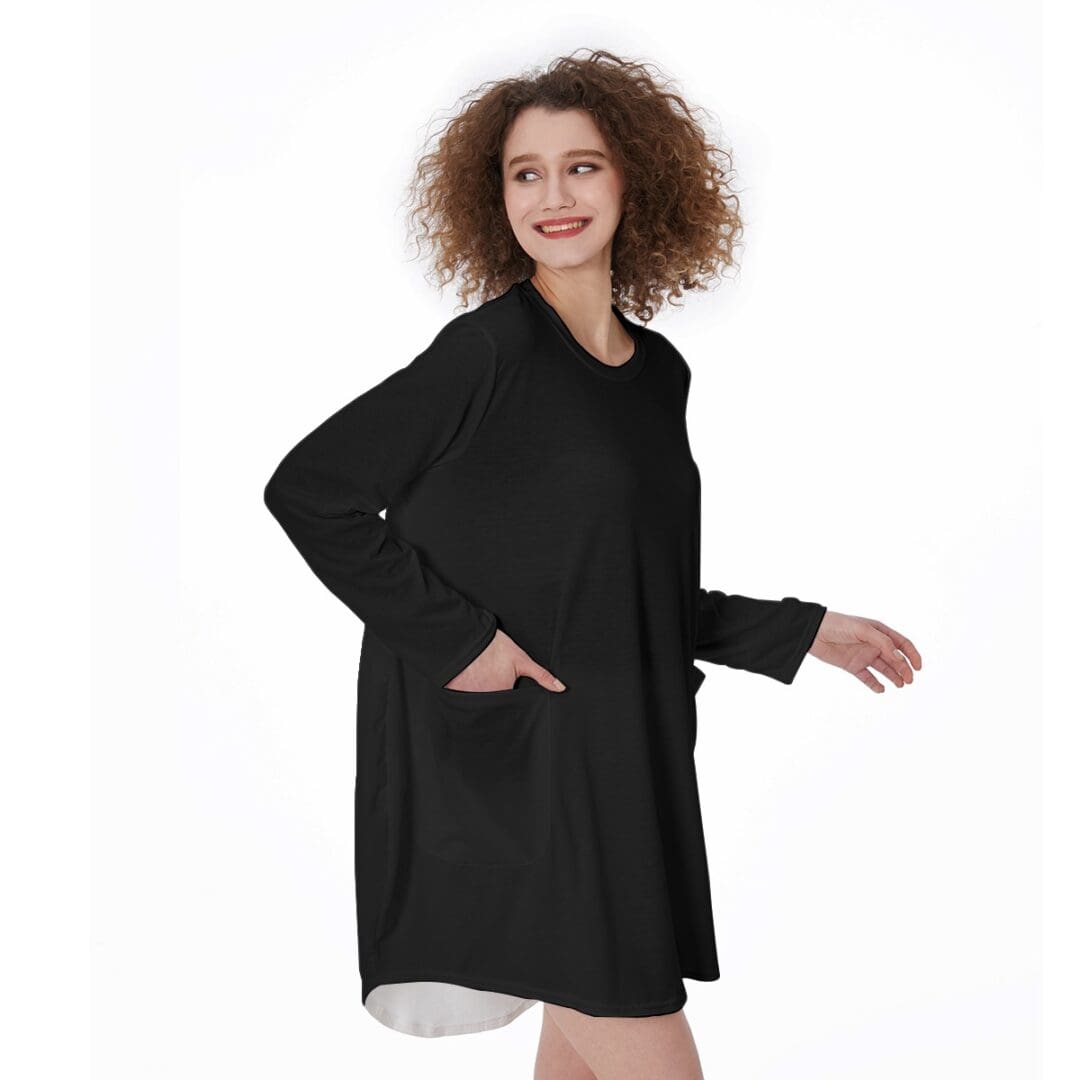 Women’s Casual Loose Long Sleeve Dress With Pocket Sizes S-5XL in Black to Mix and Match with Pops of