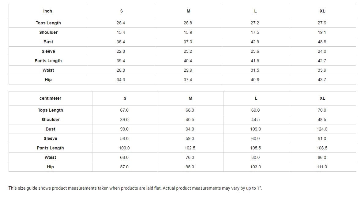 This size guide shows product measurements taken when products are laid flat. Actual product measurements may vary by up to 1″.