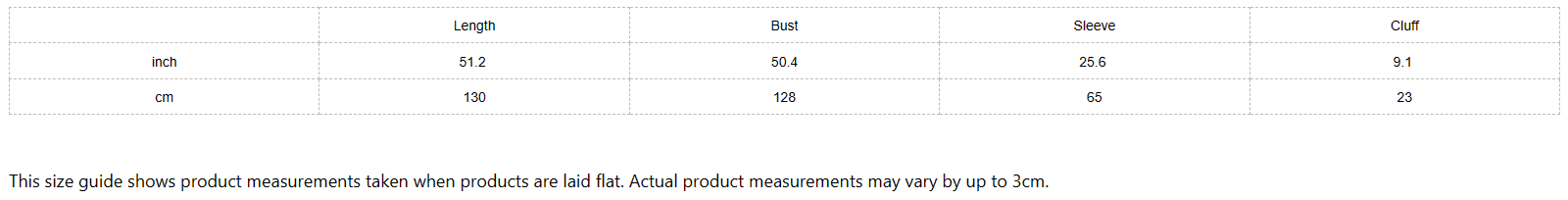 This size guide shows product measurements taken when products are laid flat. Actual product measurements may vary by up to 3cm.