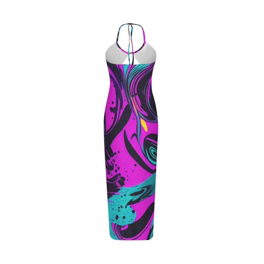 A sexy long skirt with a suspender and neck, with a hollow chest. The fabric is soft and close to the body, and the naturally sagging hem can swing with walking