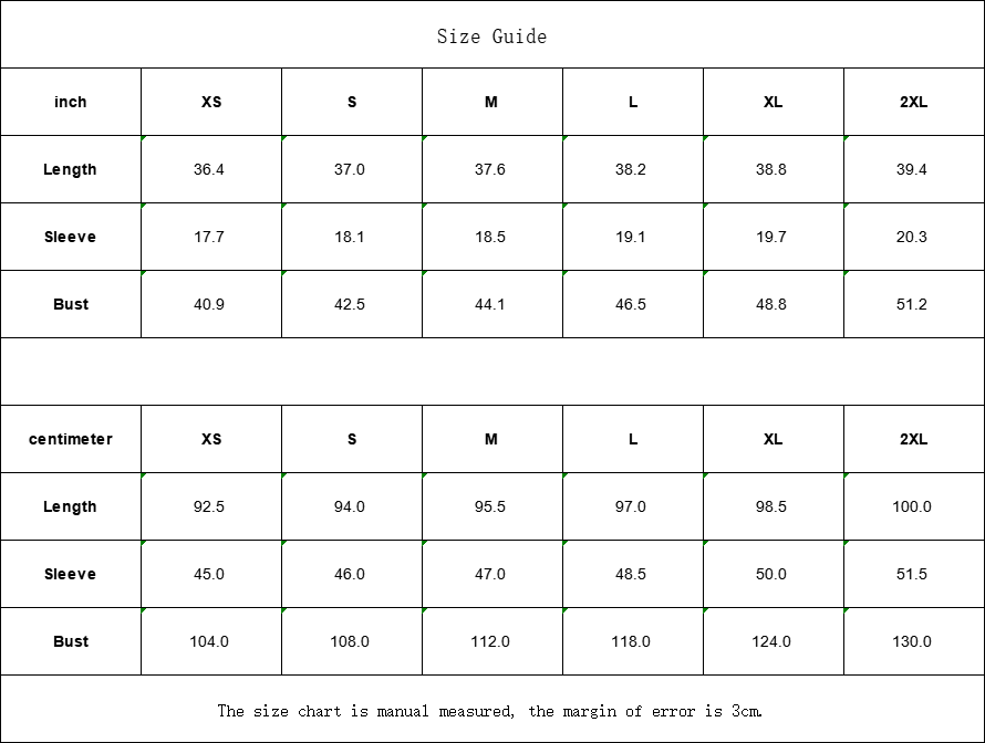 | Sleeve | 45.0 | 46.0 | 47.0 | 48.5 | 50.0 | 51.5 |